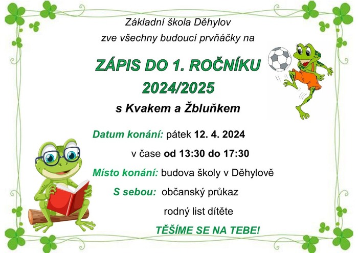 Úvod > Škola > Aktuality > Zápis do 1. ročníku školního roku 2024/2025
