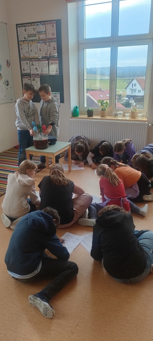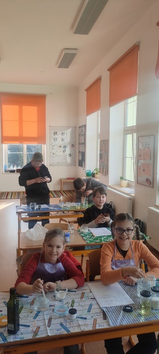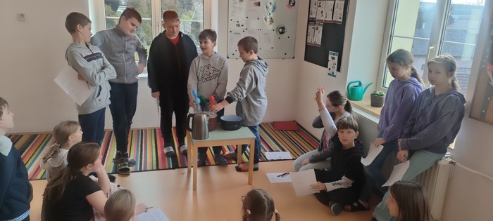 V rámci přírodovědy se žáci ze 4. a 5. třídy s nadšením pustili do praktických pokusů, které jim měly přiblížit svět látek a jejich vlastností. Nejprve zkoumali rozpustnost látek ve studené i teplé vodě. S pomoci pracovních listů svá pozorování pečlivě zapisovali a sledovali, jak se chování látek mění v závislosti na teplotě. Následující pokus se zaměřil na horký vzduch a jeho vlastnosti. Díky horké vodě a balonku si ukázali, jak se vzduch při zahřátí rozpíná. Na závěr hodiny jsme si založili další pokus, tentokrát bylo zaměřeno na získávání soli z moře a krystalizaci tohoto minerálu.