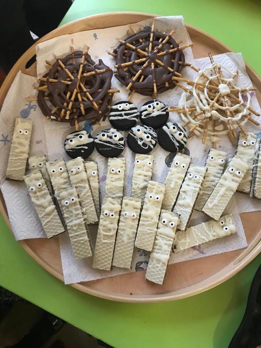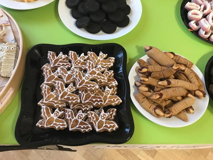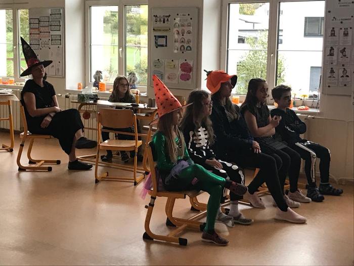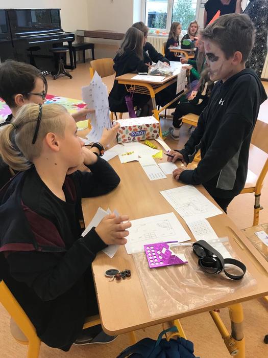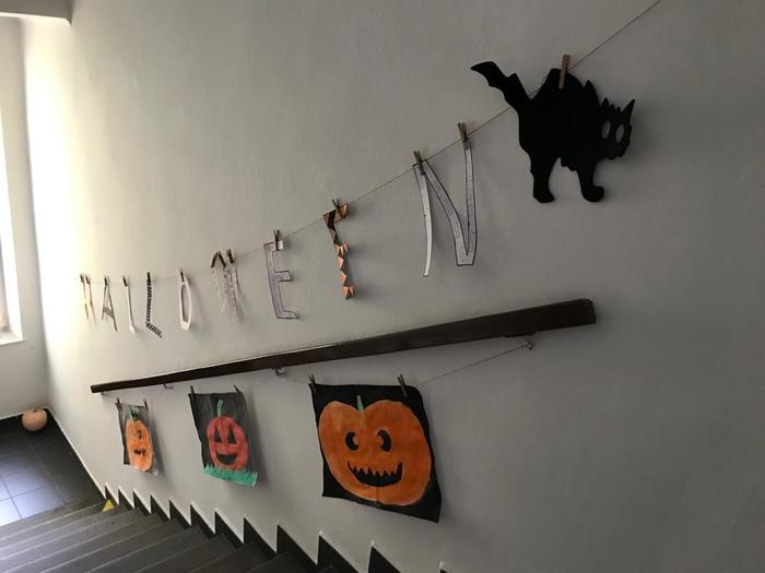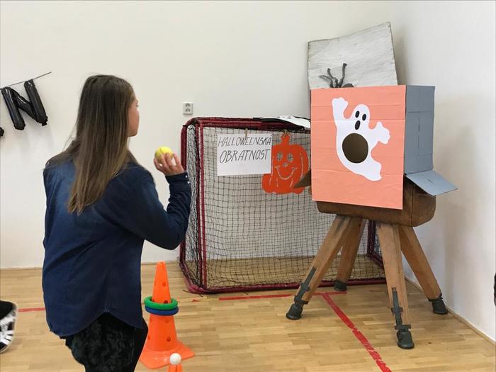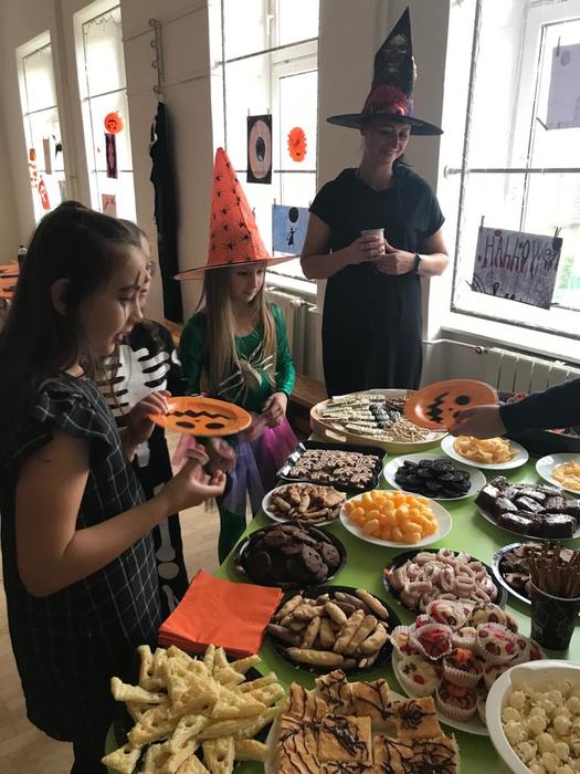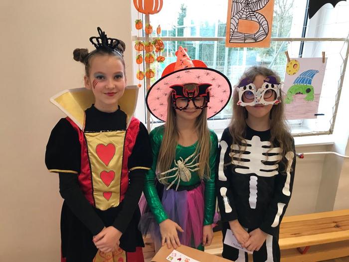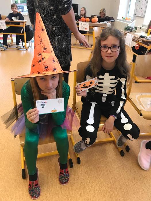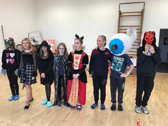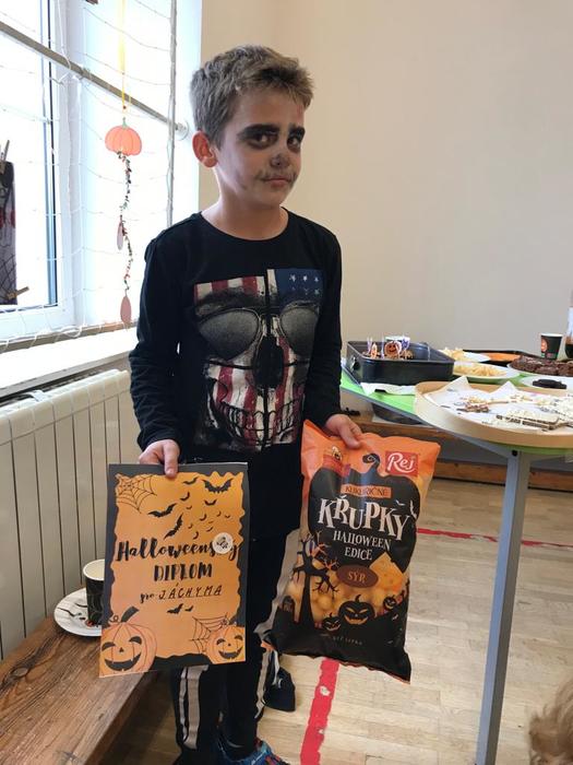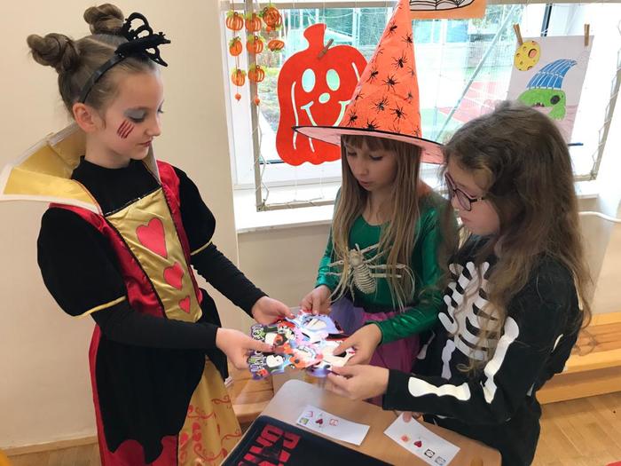 Halloween již neodmyslitelně patří k tradičním akcím, které naše škola v Dobroslavicích pořádá. Letošní páťáci si připravili pro čtvrtou třídu bohatý program, který se odehrával v průběhu dopoledne v celé škole. Prvním úkolem pro čtvrťáky bylo pomocí šifry najít ztracené spolužáky. Byli moc šikovní a všechny páťáky našli :-) Získali tak další indicii, díky které rozluštili, kde bude halloweenský program pokračovat. Následovalo plnění úkolů na jednotlivých stanovištích: dlabání dýně, únikovka, luštění křížovky a tvoření z papíru. V tělocvičně na nás čekalo výborné občerstvení U Černé kočky a náš program tak pokračoval dál. Děti si tady mohly vyzkoušet záhadné pokusy, hádaly, co je ukryto v kouzelné krabici, Srdcová dáma jim předvedla kouzla. Na dalším stanovišti si žáci otestovali svou obratnost. Na konci této akce nechybělo ani vyhodnocení soutěže o nejlepší kostým a obrázek s halloweenskou tématikou. Všem dětem, které akci připravovaly patří velká pochvala. Zároveň bychom chtěli poděkovat rodičům za přípravu pestrého a velmi dobrého občerstvení.