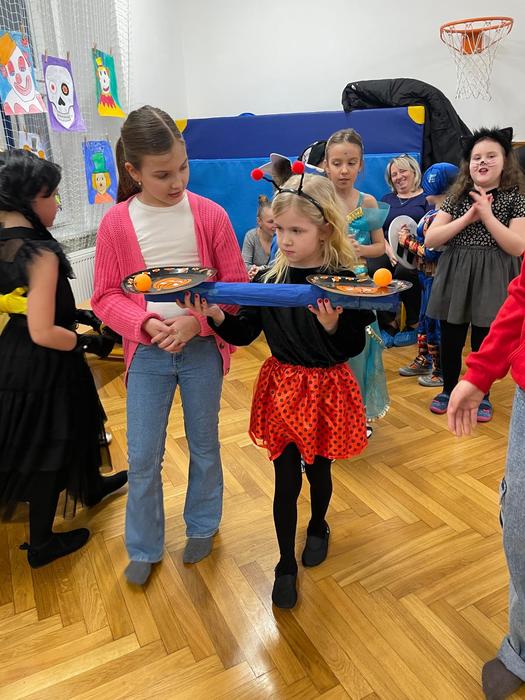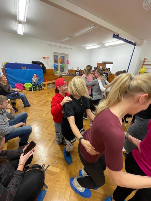 V malé pauze se všichni mohli občerstvit dobrotami z kuchyně učitelského sboru, přátelsky si popovídat a znovu se vydat do víru tance i her.