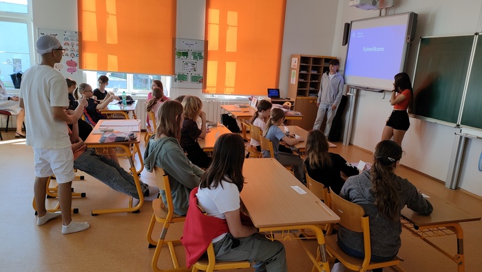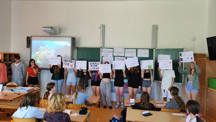 Připraven měli program zaměřený na bezpečí na internetu a sociálních sítích. Formou prezentací, scének a kvízů se naše děti dozvěděly vše o kyberšikaně, netolizmu, seznámily se s pojmy jako jsou kybergrooming, happy slapping, stalking, sexting. Akce trvala 2 vyučovací hodiny.