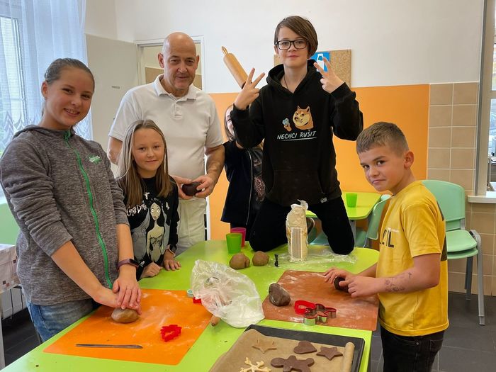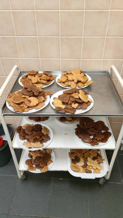 I letos jsme využili prostory naší malé jídelny a kuchyně. Úžasné maminky a babičky našich dětí nám zaslaly perníková těsta, ze kterých pak za pomoci našeho skvělého pana školníka děti vykrajovaly a pekly voňavoučké perníky. Všem za pomoc moc děkujeme!