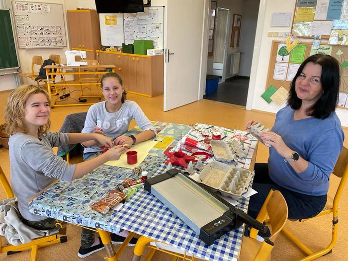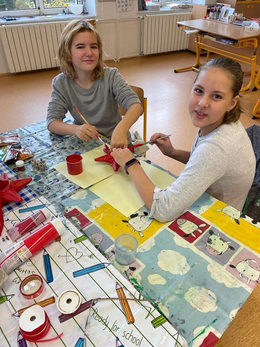 Páteční dopoledne jsme rovněž využili k zhotovování vánočních výrobků, které budou děti z 5. třídy dne 2. 12. nabízet k prodeji v kulturním domě v Děhylově.