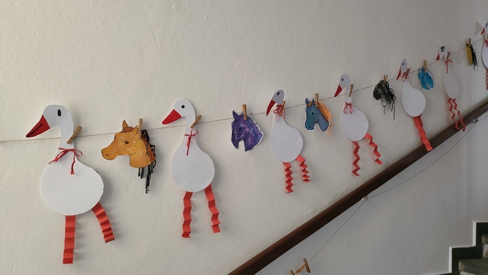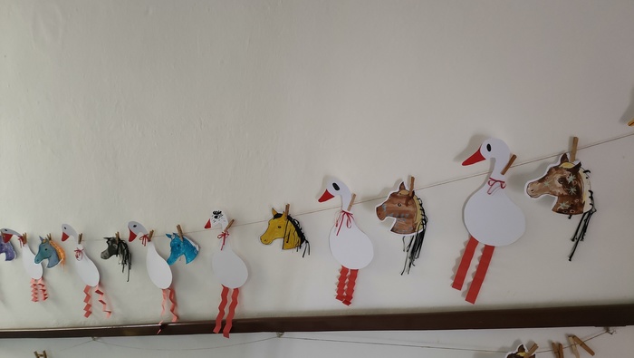 Děti ze 4. a 5. ročníku byly rozděleny do 3 skupin, společně pak navštěvovaly jednotlivá stanoviště. Nejprve se žáci seznámili z interaktivní tabule s komiksem o svatém Martinovi, následně rozstříhaný papírový příběh chronologicky skládali. Na dalším stanovišti si přečetli příběh o jeho životě a skutcích, kvíz pak ověřil jejich paměť a znalosti. Poté se všichni přesunuli k práci s papírem. Děti si vyzdobily a vybarvily papírové koně, následovala výroba svatomartinské husy.