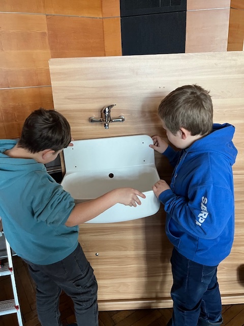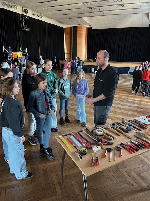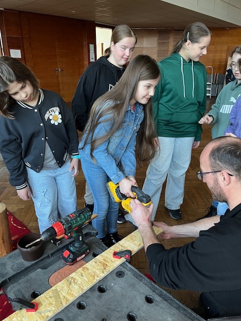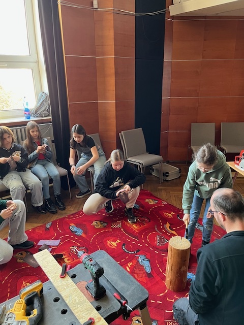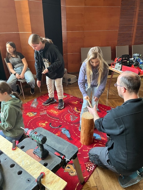 kominictví (čištění komínu a seznámení s měřicí a inspekční technikou), životní prostředí a spalování paliv a také si vyzkoušeli práci s rozličným ručním nářadím (zatloukání hřebíků, přivrtání vrutu, vyvrtání otvoru, řezání pilkou) i šroubování metrických matic.