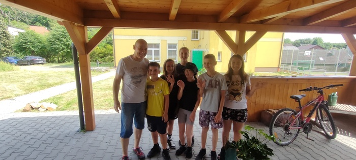 Odpolední rozlučkový program se pak odehrával v příjemném prostředí pergoly u školy. Děti si společně pochutnaly na objednané pizze, opékaly špekáčky, mohutně se ochlazovaly vodou ze studně a užívaly si poslední chvíle se spolužáky i učiteli.