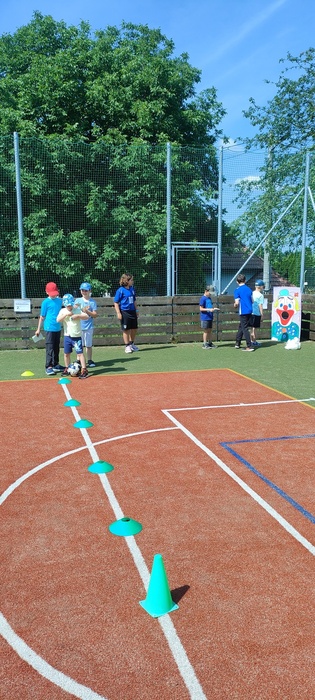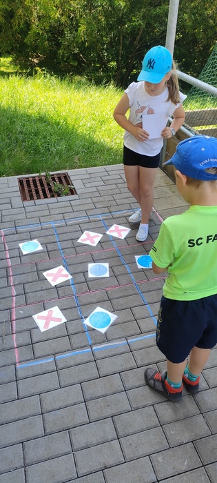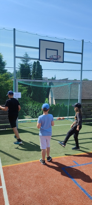 Druhá část sportovního dne se přesunula na hřiště u základní školy. Ani zde nechyběla pestrost aktivit - děti čekala nová stanoviště plná pohybových her a zábavných výzev. Za splnění úkolu jim byl na kartičku nakreslen symbol, a kdo měl po absolvování všech disciplín kartičku plnou, získal zaslouženou odměnu.