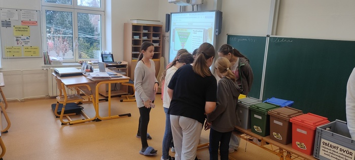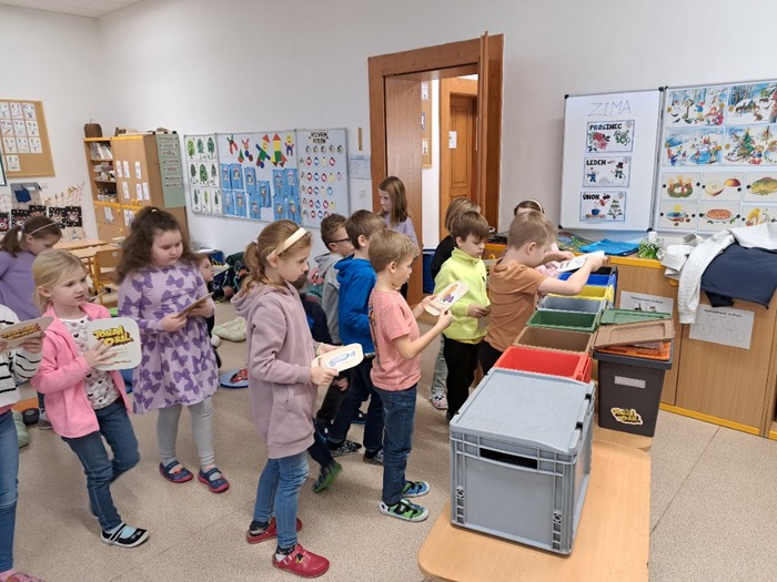 Po Vánocích jsme pozvali do naší školy lektora s programem Tonda obal na cestách. Děti se dozvěděly, proč a jak se odpad třídí a co se z něj následně vyrábí. Měly možnost se podívat na vzorky z recyklovaných materiálů, zhlédnout edukativní videa a získat drobné odměny.