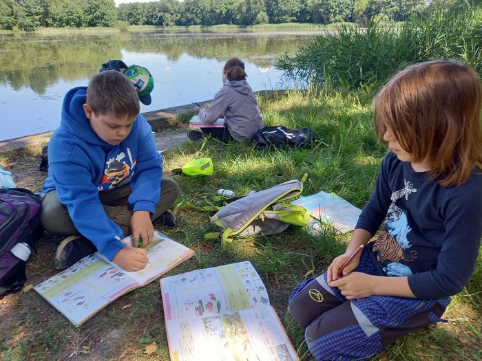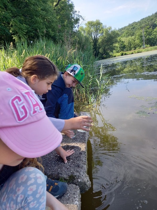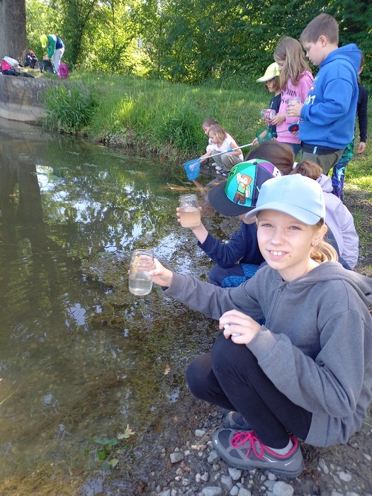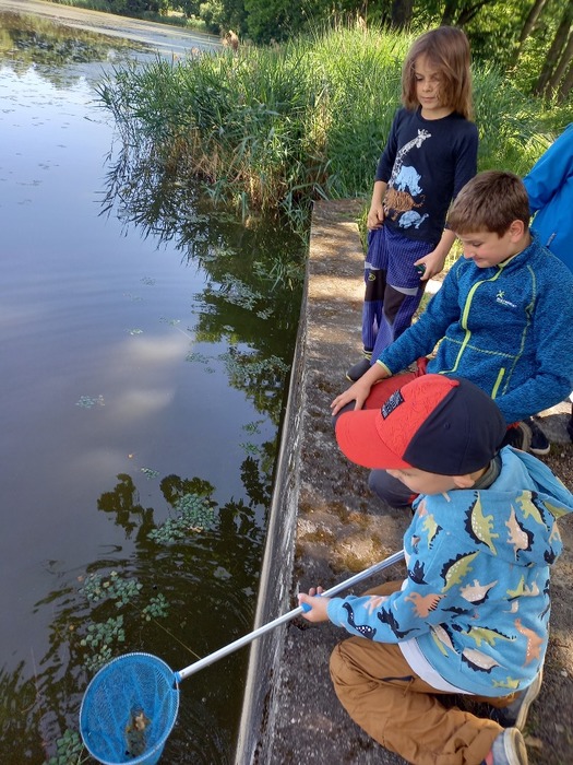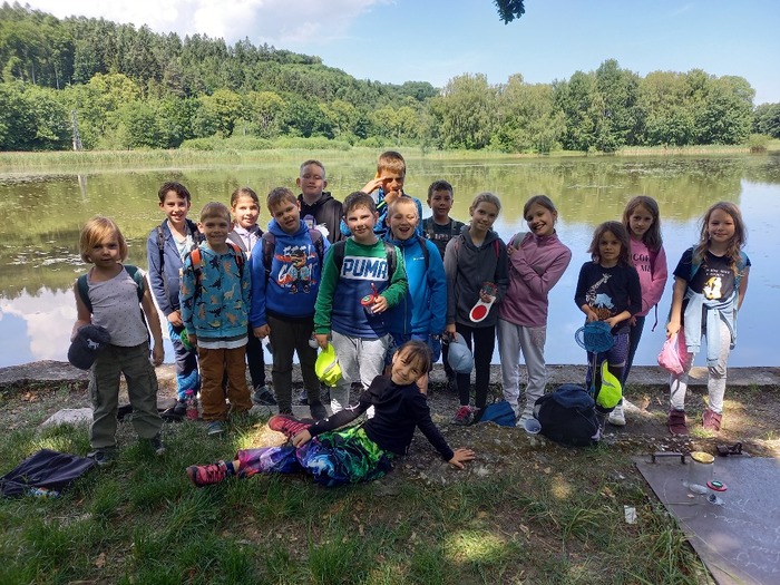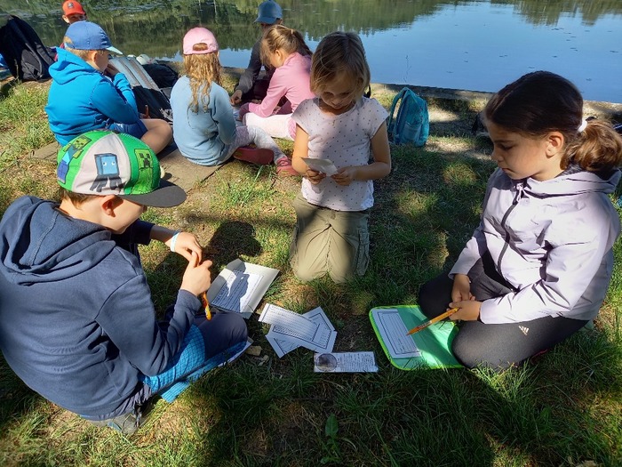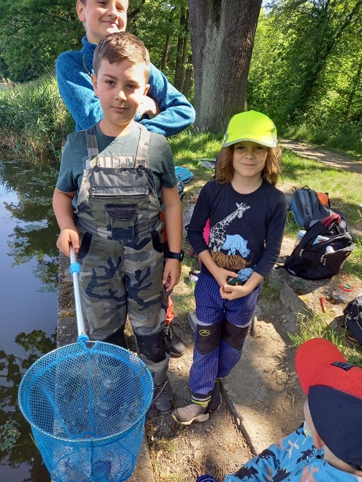 U vody i ve vodě, tak znělo téma našeho putování za zajímavostmi o rostlinách a živočiších, které najdeme v okolí rybníka. Podařilo se nám objevit nádherné lekníny i stulíky, které patří k ohroženým druhům rostlin a my máme to štěstí, že nám rostou v našem blízkém okolí. Sledovali jsme a poznávali ptáky žijící v blízkosti vody, zkoumali jsme, co se dá najít pod vodní hladinou, vylovili jsme kotvici plovoucí - rostlinku, se kterou si děti užily spoustu legrace. V družstvech si naši malí dobrodruzi zahráli kimovu hru, luštili křížovky i řešili rébusy. Zjišťovali, které vodní plochy vznikají samovolně v přírodě a co vytvořil člověk. Našli jsme i několik bezobratlých živočichů - bruslařku, vodoměrku i potápníka, přiletěla se na nás podívat vážka i několik samiček komára. Jsme zvědaví, co nás čeká příště...