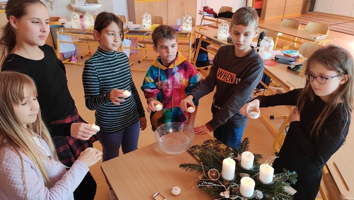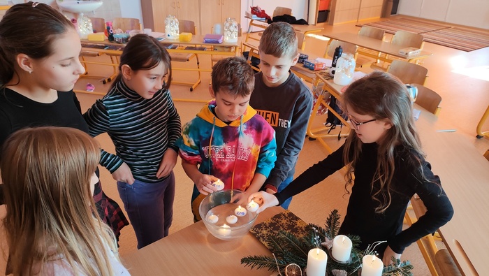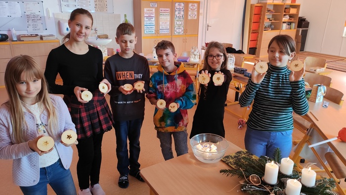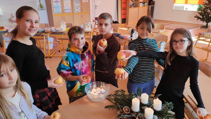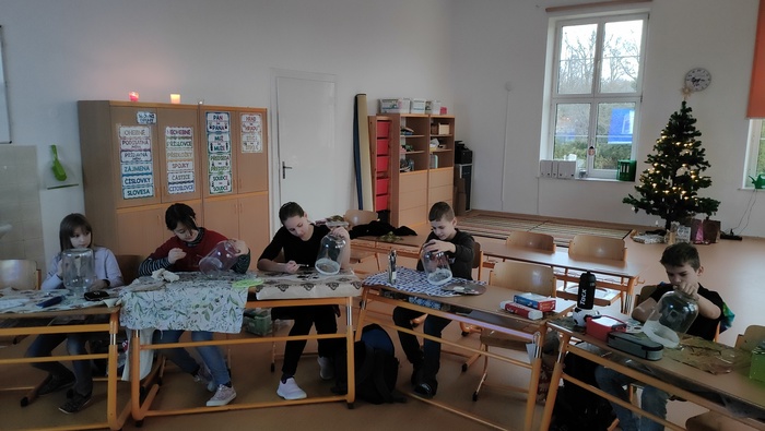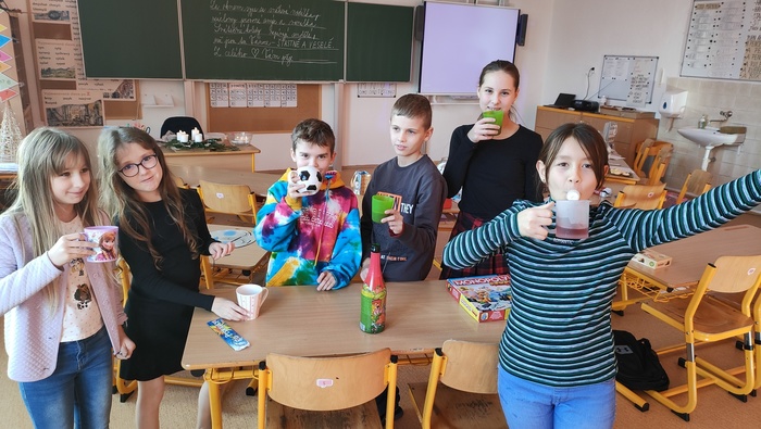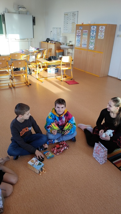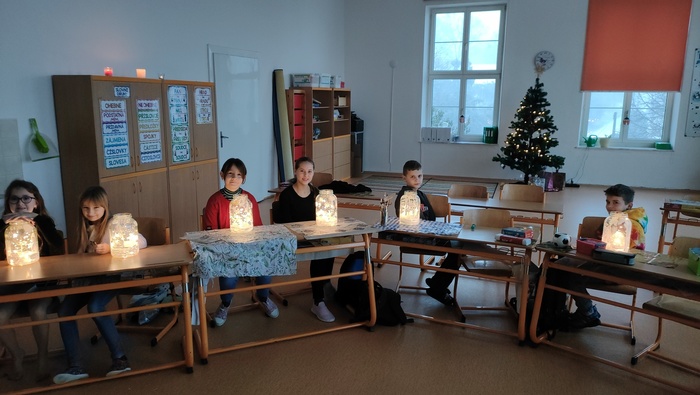 Vánoční posezení u stromečku se určitě ukázalo jako vhodné zakončení školních povinností. Hned z rána jsme se pustili do výroby skleněných luceren, poté si děti spolu s pátou třídou zpestřili program svými hudebními i tanečními představeními. Následovalo předávání dárečků a velká radost z toho, jak svého kamaráda či kamarádku potěšit. Podívali jsme se na krásné video o staročeských tradicích a zvycích, vyplnili k tomu pracovní list a hurá to vyzkoušet v praxi. Pouštění lodiček, rozkrojení jablka a zapálení prskavek nesmělo chybět. Vůně cukroví a čaje jen dokreslovaly vánoční atmosféru. Na závěr jsme se usadili s dobrotami před obrazovku a bavili se spolu s hrdinou filmu Sám doma.
