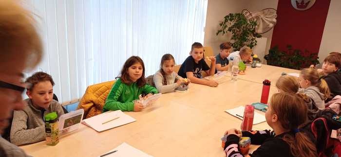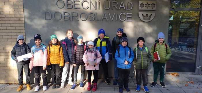 Ve čtvrtek 17. 10. jsme s dětmi čtvrté třídy v rámci vlastivědy vyrazili na procházku. Děti se rozdělily do skupinek. Společně se snažily vytvořit plánek Dobroslavic a vyznačit orientační body obce. Součástí procházky byla také návštěva Obecního úřadu v Dobroslavicích, kde nás velmi mile přivítala paní Holušová. Mohli jsme nahlédnout do kanceláře paní starostky, podívat se do zasedací místnosti. Dozvěděli jsme se, že se zde setkávají zastupitelé obce nebo probíhají volby. Paní Holušová nás také zavedla do podkroví úřadu. Tady si děti prohlédly výstavu nádherných fotografií přírody. Poté jsme se obohaceni novými informacemi vrátili zpět do školy.