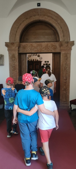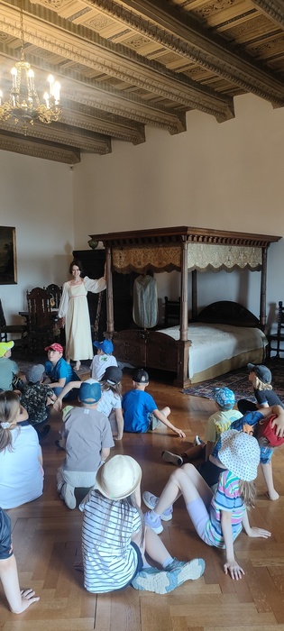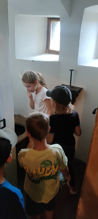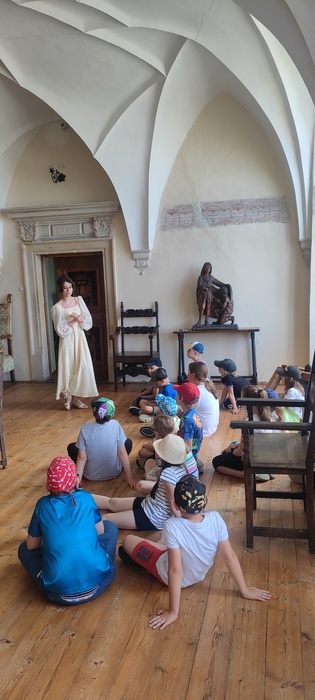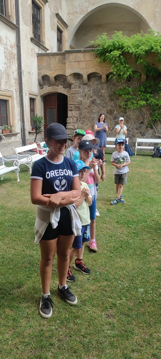 Následovala komentovaná prohlídka hradu s průvodkyní, která nás poutavým vyprávěním provedla historií této významné památky. Děti se dozvěděly spoustu zajímavostí ze života šlechty i o tom, jak se žilo na hradě v minulosti.